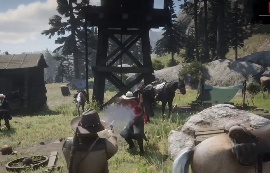 The footage shows the protagonist Arthur Morgan on a horse, shooting cowboys. Many Red Dead Redemption fans will recognize some features like the mini-map, the wanted system and the special menu for weapons. What’s new is the slow motion kill cam that will give you a new view of the carnage from many angles. There’s also some horse items and Premium Cigarette Packs that you can obtain for a collectible cigarette card.