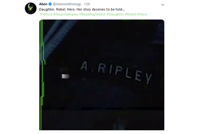 The video also asks a question – “Who is Amanda Ripley,” ending with the words “Read, Play, Watch.”