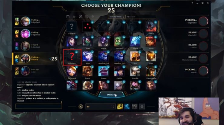 Did you see that coming? Neither did we and to my defense, as a main support, I don’t watch guides for other champions. But I browsed Voyboy’s Mordekaiser guide and in his second video that shows a full gameplay against the Riot games test team, I spotted a strangely missing icon (seconds 19-20) with a name under it: Aphelios!