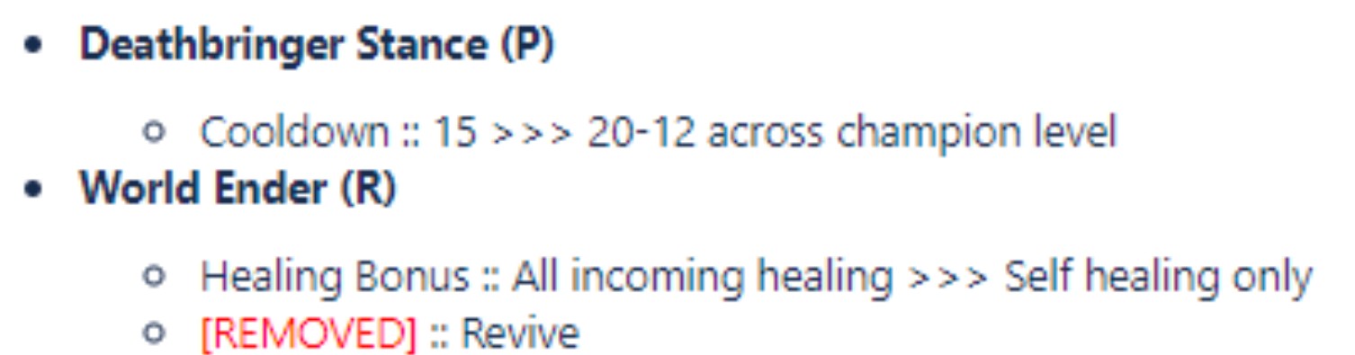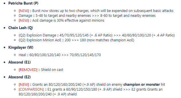 The following changes are compared to the live values, not to the previous changes we covered this weekend. Also remember that this is PBE and all changes are tentative and subject to further change id playtesting gives negative feedback.
