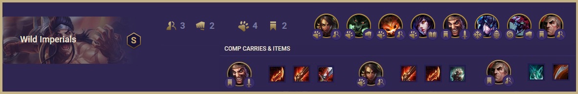 Just like with the Wild Sorcerers, Nidalee, Warwick, and Ahri will help carry you in early until you add Draven to the mix. Add Cho’Gath, Sejuani, and Gnar to complete the frontline and CC. Draven and Swain are insanely OP with the wild and imperial buffs.