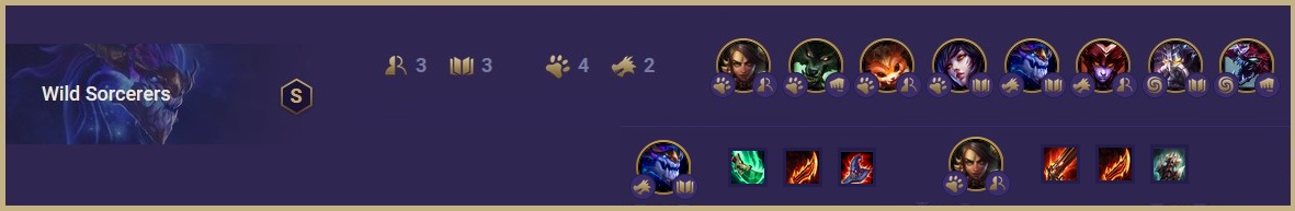 Makes sure you get the wild and shapeshifter buffs fast to win your way through the rounds until you find ASol. You should have on the board Nidalee, Warwick, Ahri, Kassadin, Shyvana and Gnar, but if you don’t find ASol, you can fill with Elise or Rengar until then.